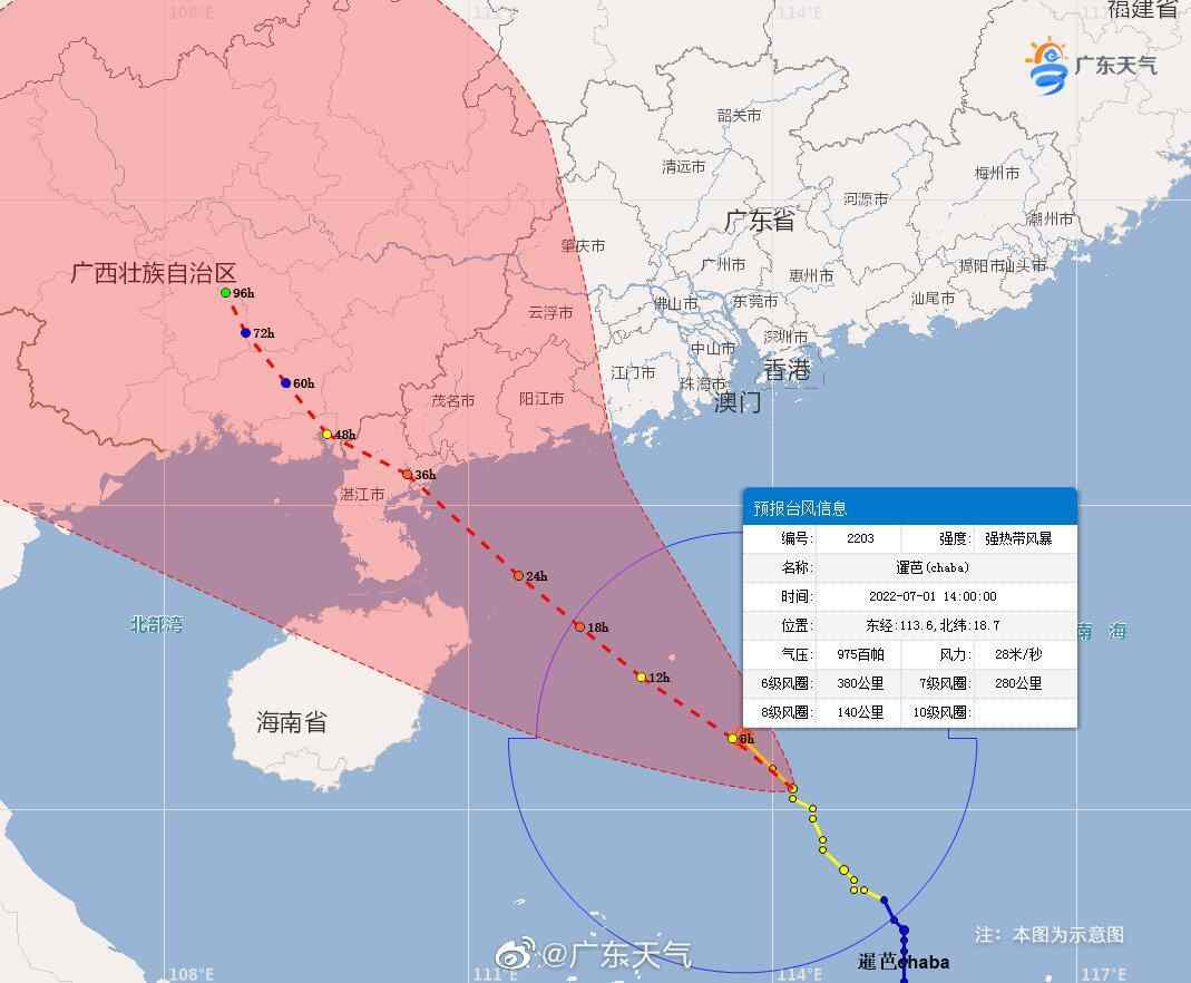 廣東省景象臺7月1日上午對“暹芭”的途徑預告
